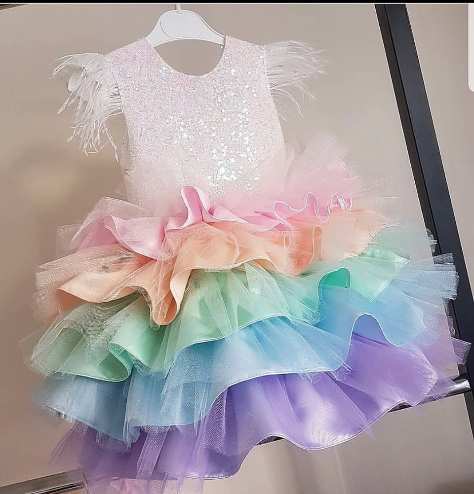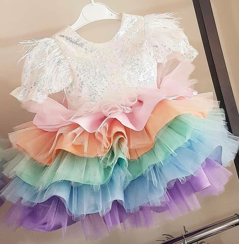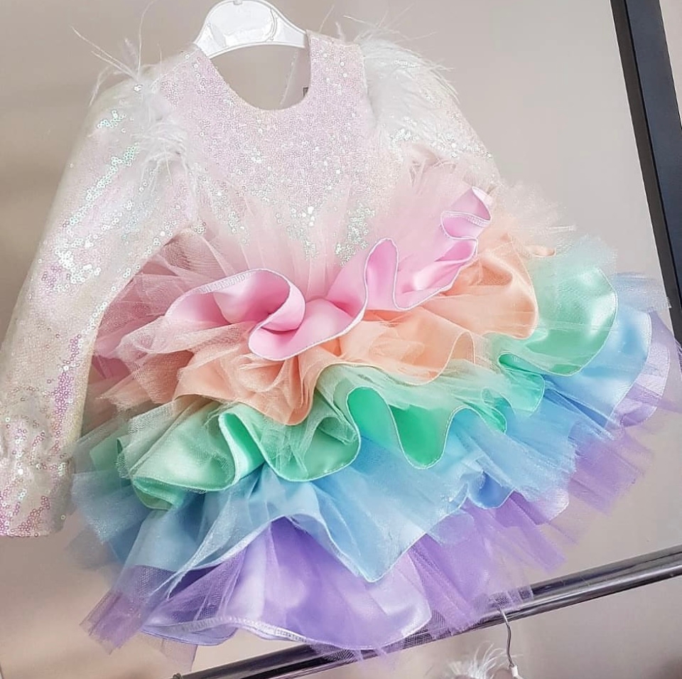The lower skirt part is sewn as tutu in rainbow colors.. The interior of our dress, designed with crystal tulle, is cotton-lined and does not irritate the skin.buckle is included in our dress