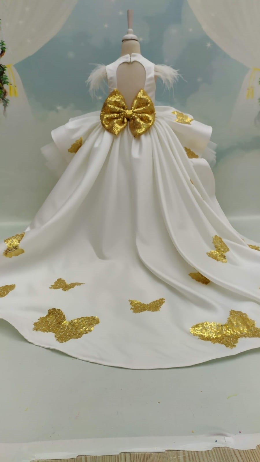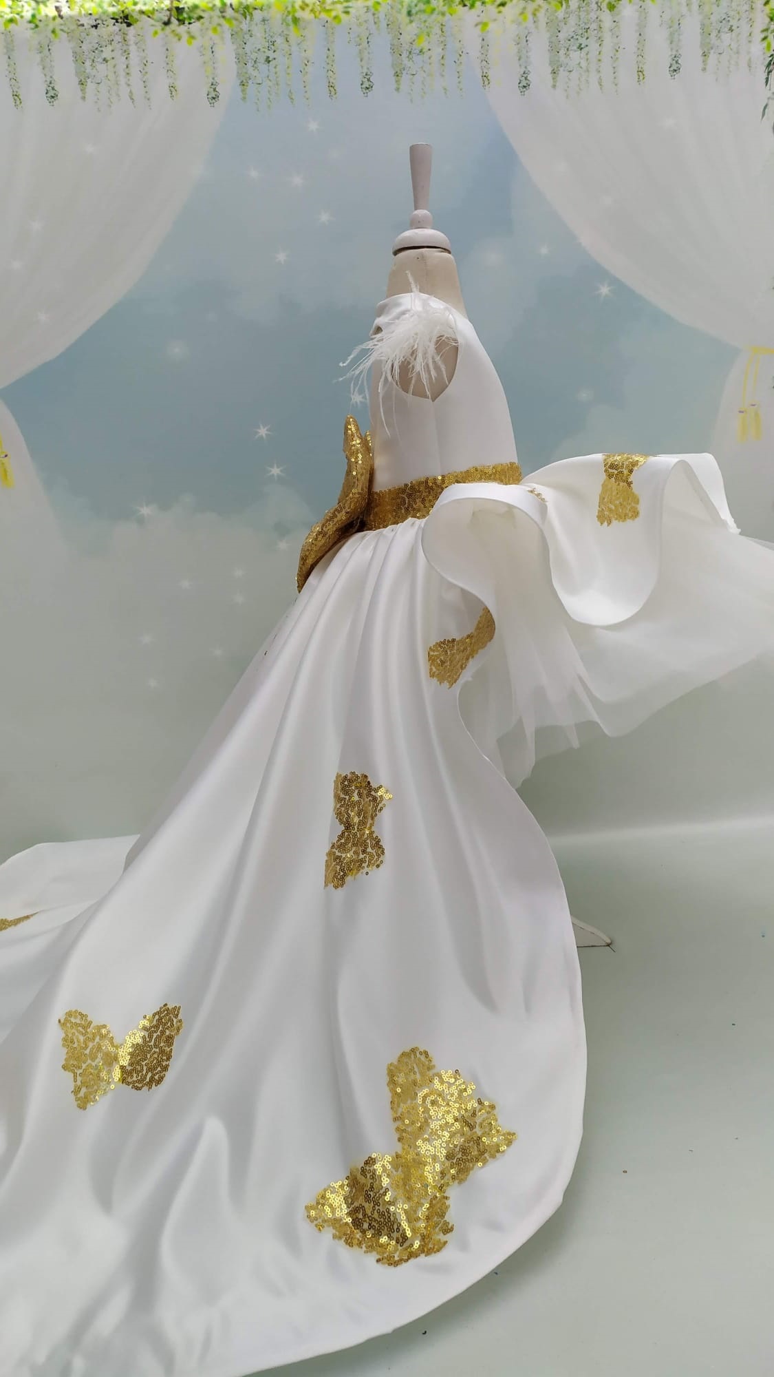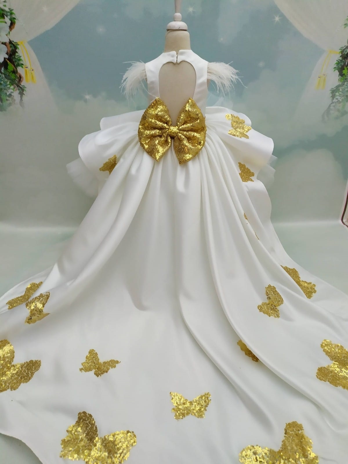 White and Gold Butterfly For Girl Dress, Butterfly Birthday Party Dress, Butterfly Dress Toddler, Butterfly Dress Baby Girl, Train Dress