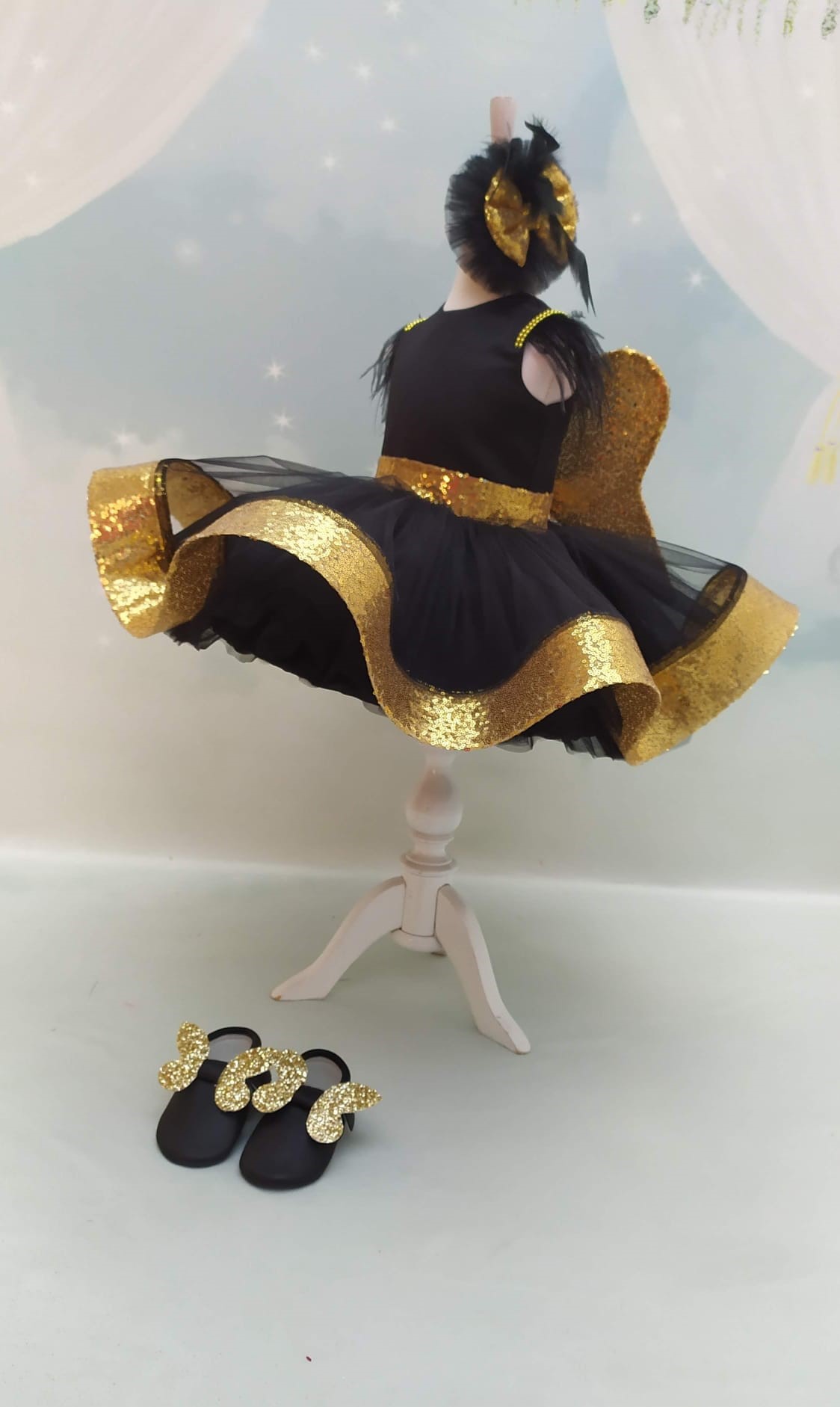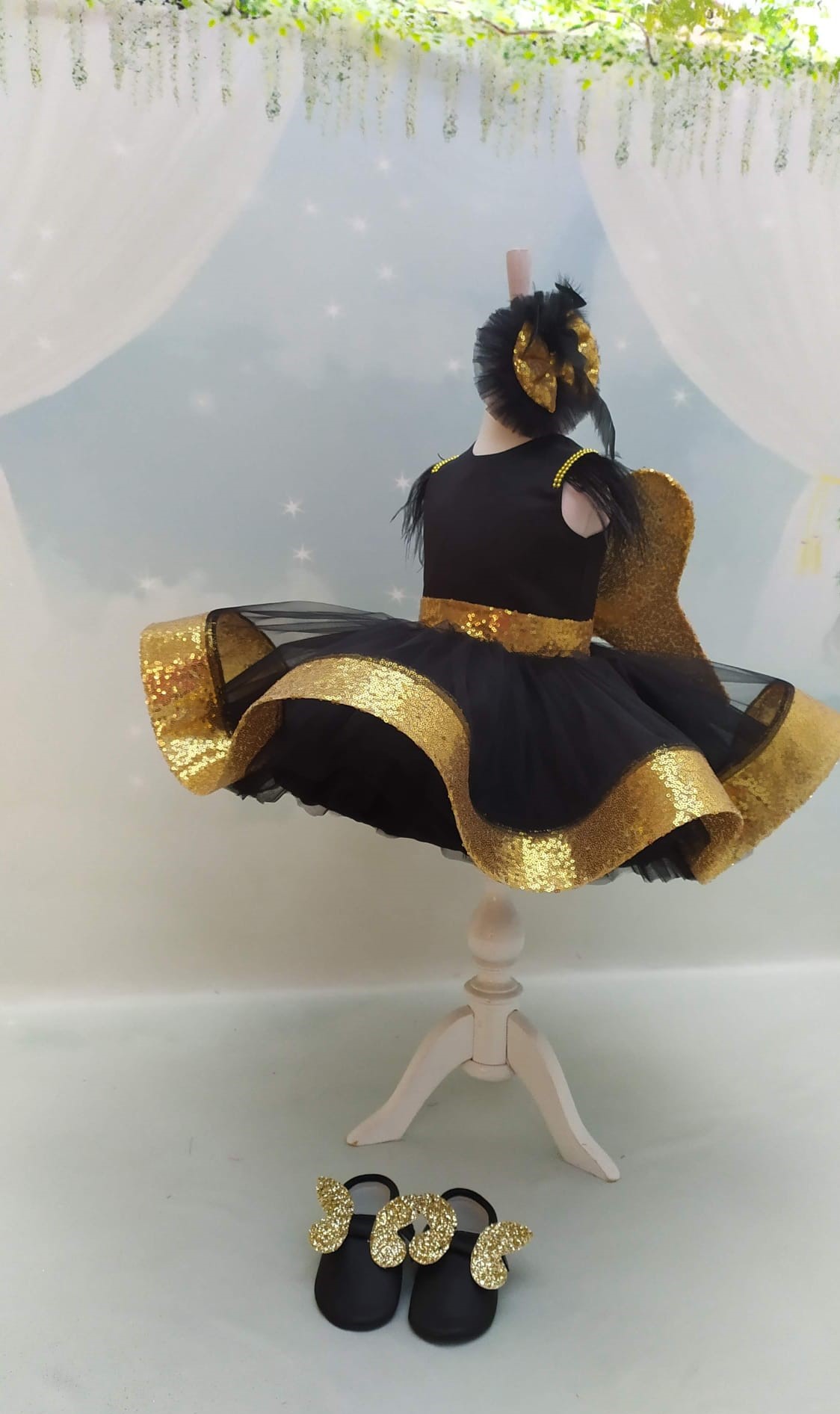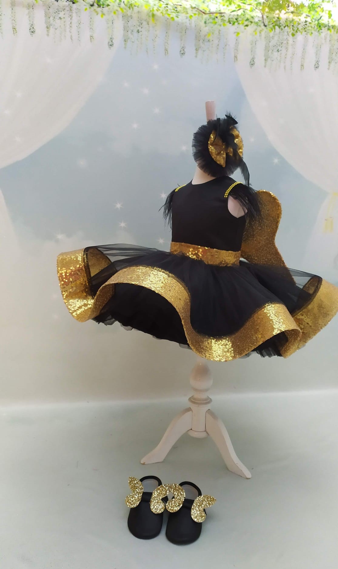 ur set with angel wings in black and gold, including shoes and buckle, is made of premium fabrics, cotton lined inside and does not irritate the skin.Can be sewn in the dimensions you want Baby Dress Set, Black Dress for Girls, Black and Gold Dress, Toddler Black Tutu Dress, Tulle Dress Baby Girl, Birthday Dress 1 Year Old