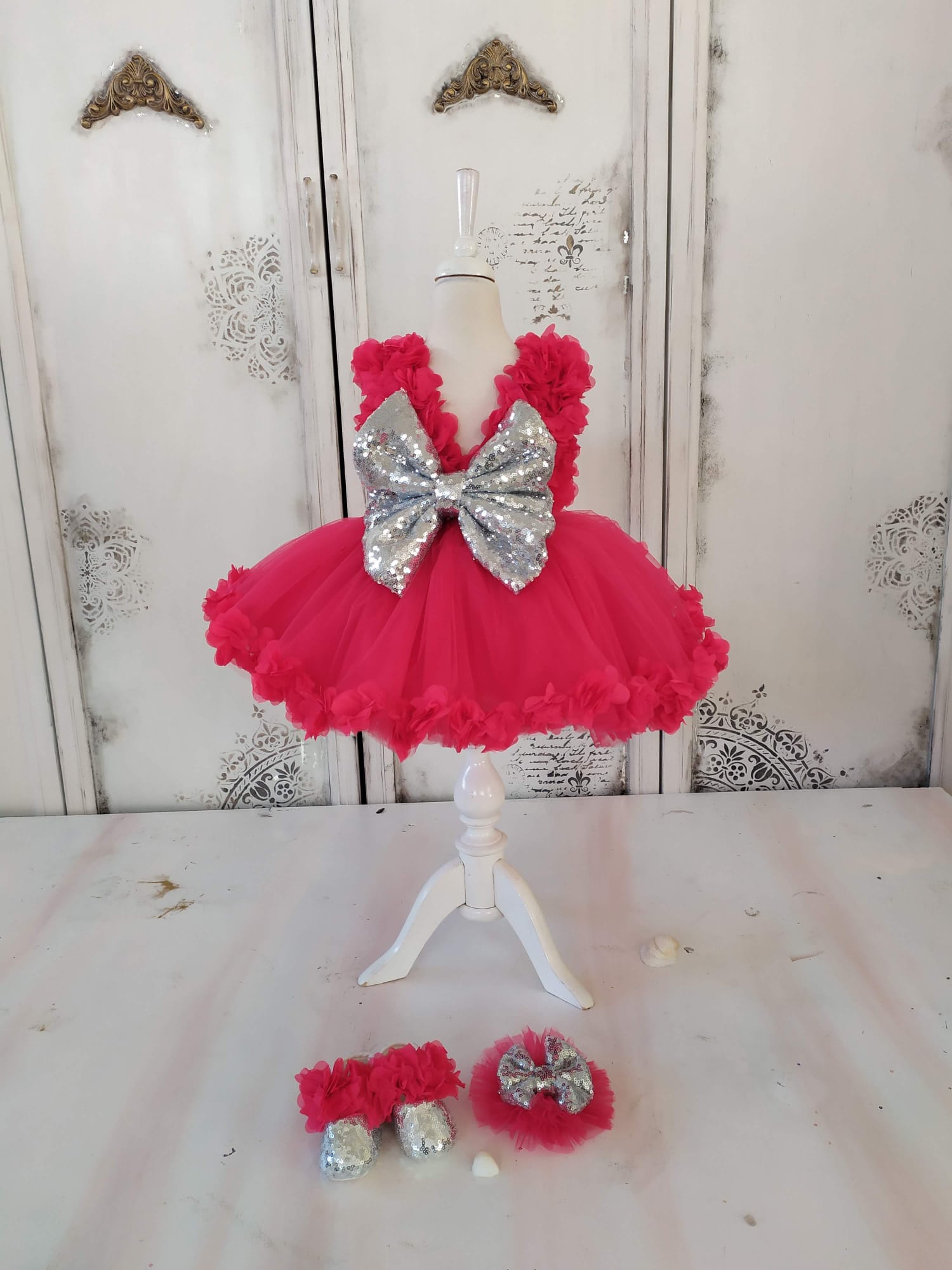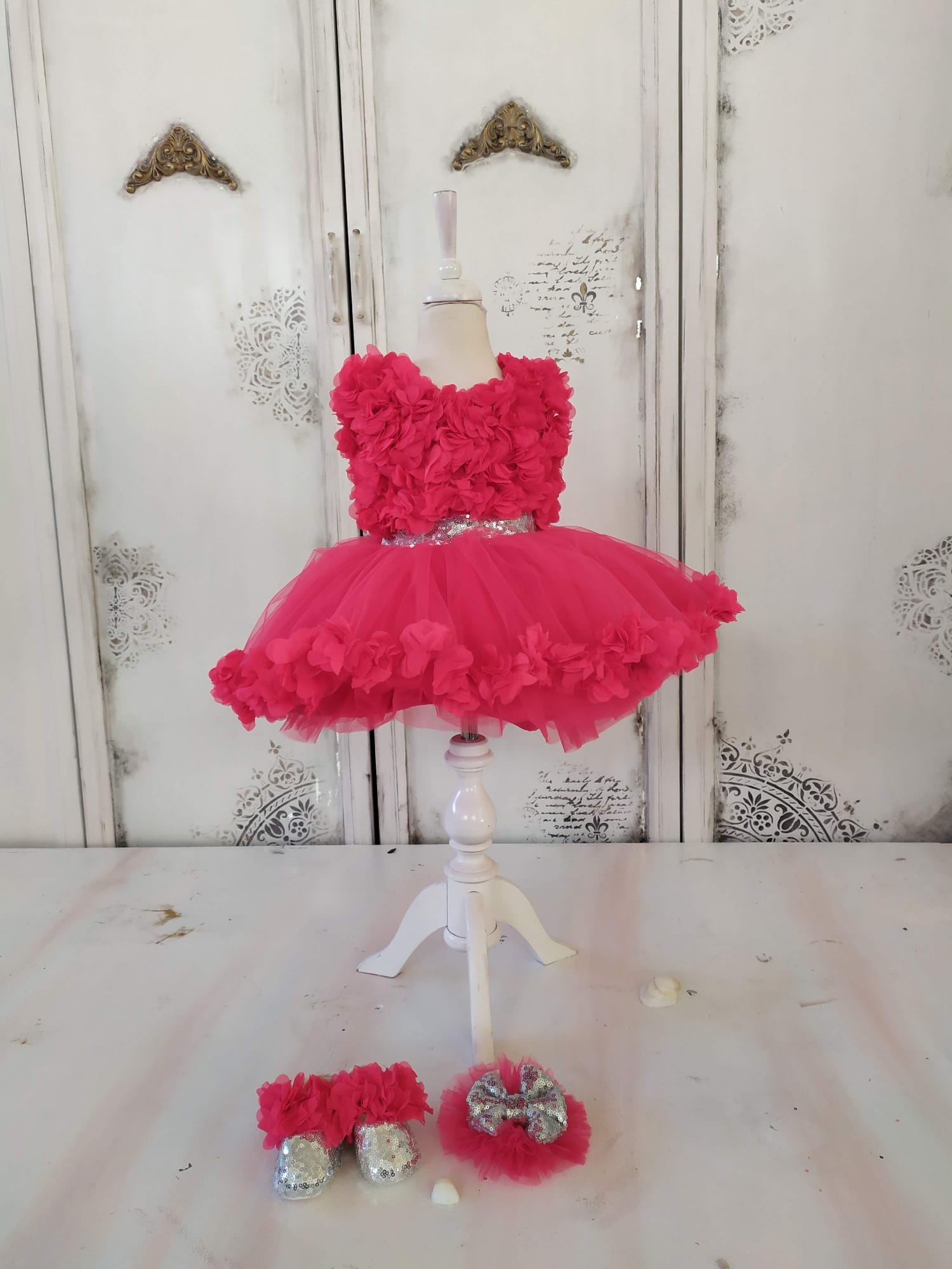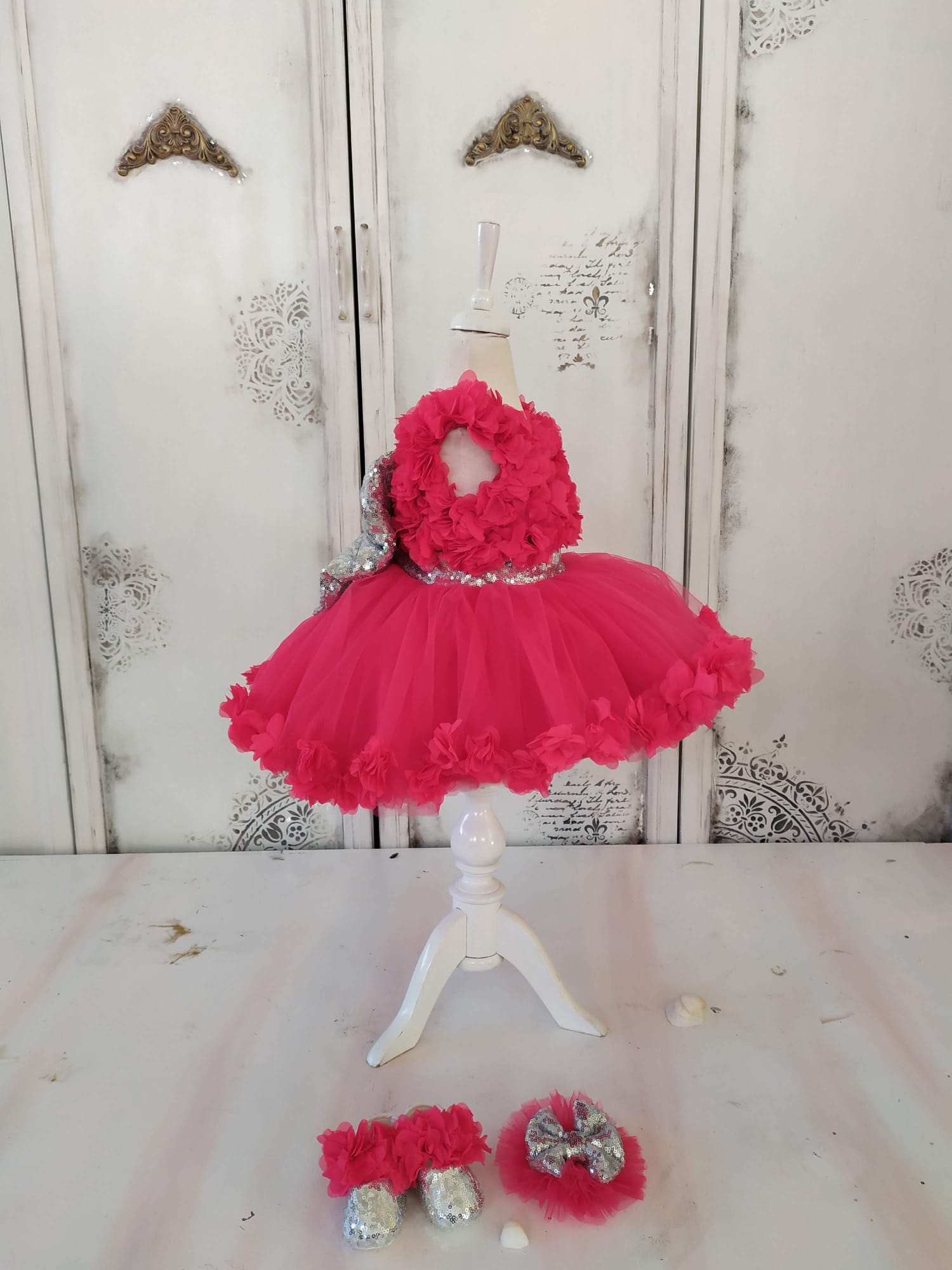 I prepared a wonderful dress with 3D laser cut flowers for the little princesses.. - Combining red tulle and flowers with silver color, this eye-catching dress came out. An elegant look, quality workmanship and quality fabric, what more could you ask for :)