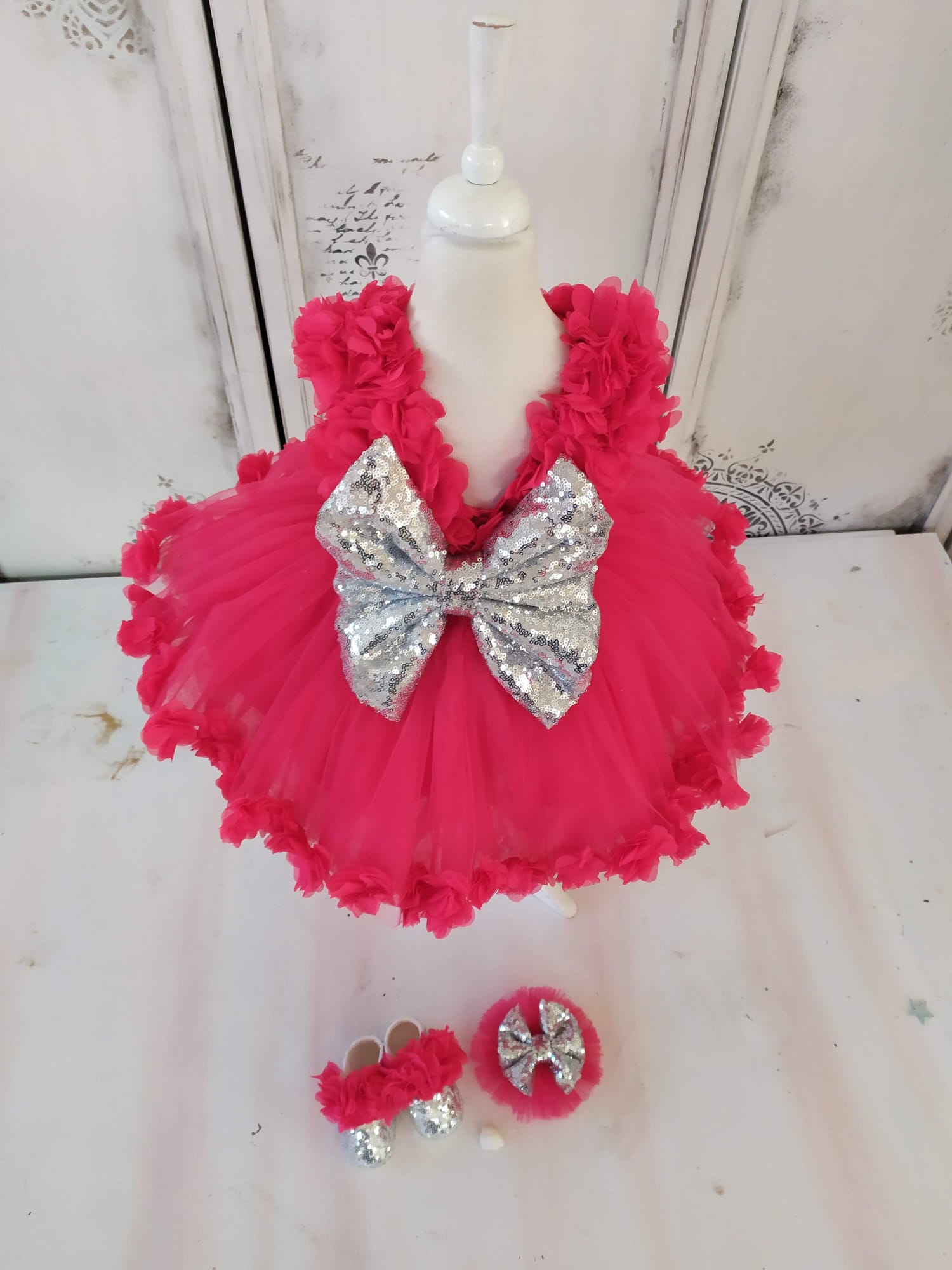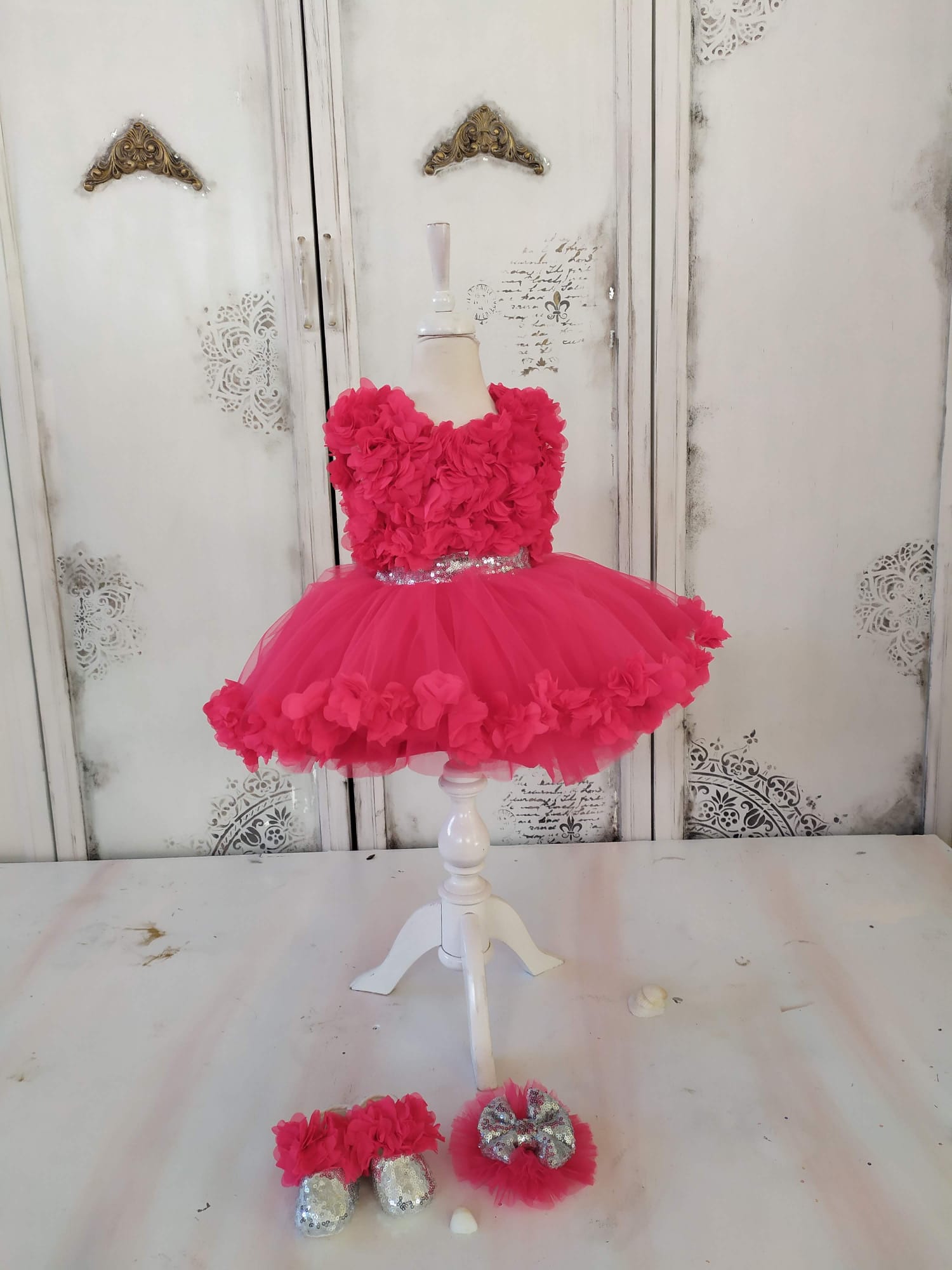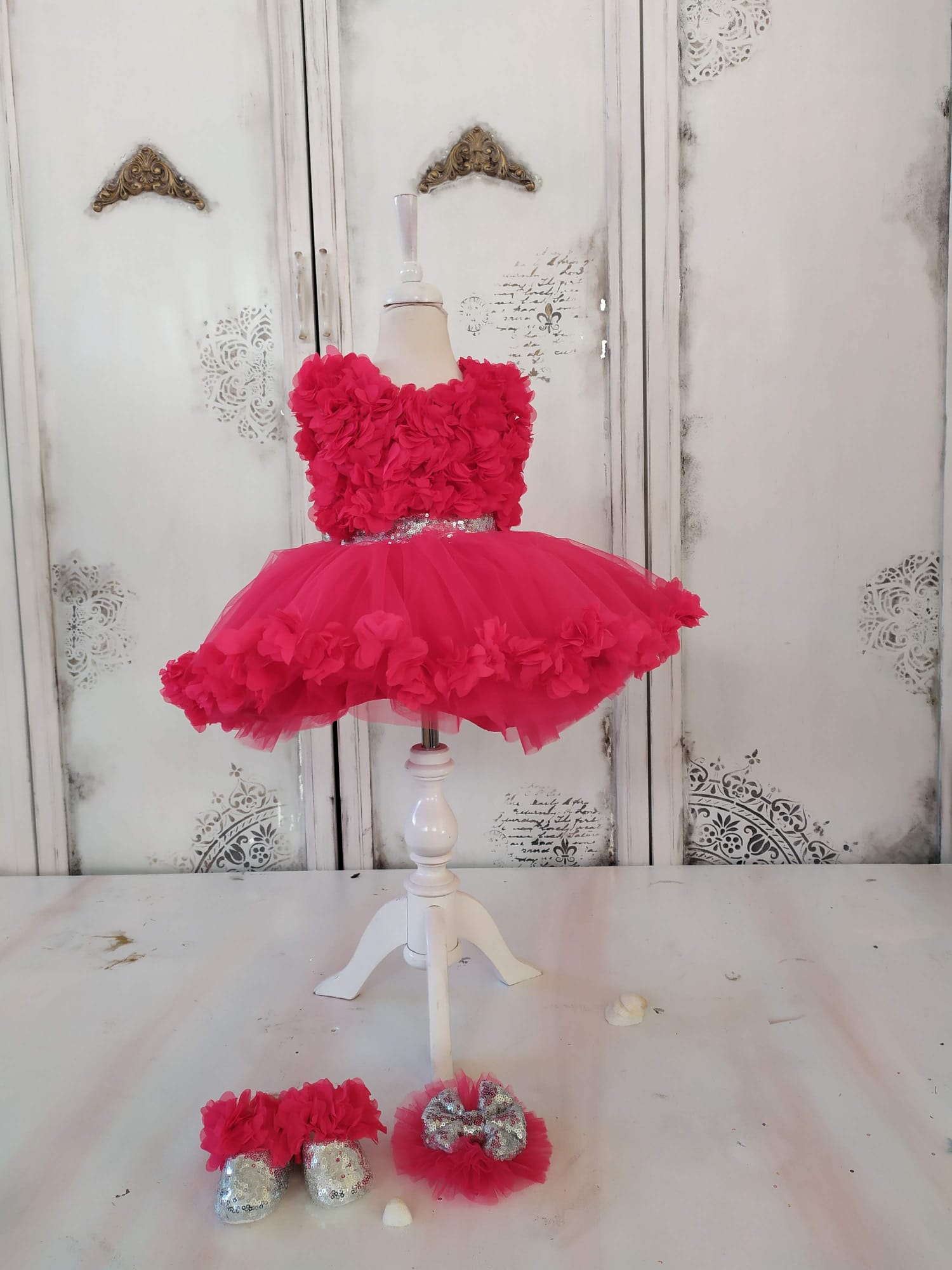 I prepared a wonderful dress with 3D laser cut flowers for the little princesses.. - Combining red tulle and flowers with silver color, this eye-catching dress came out. An elegant look, quality workmanship and quality fabric, what more could you ask for :)